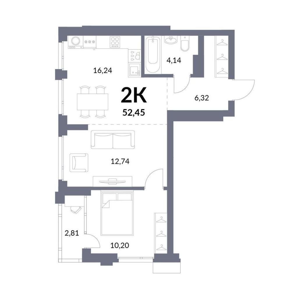 Общая площадь 52.46 м2