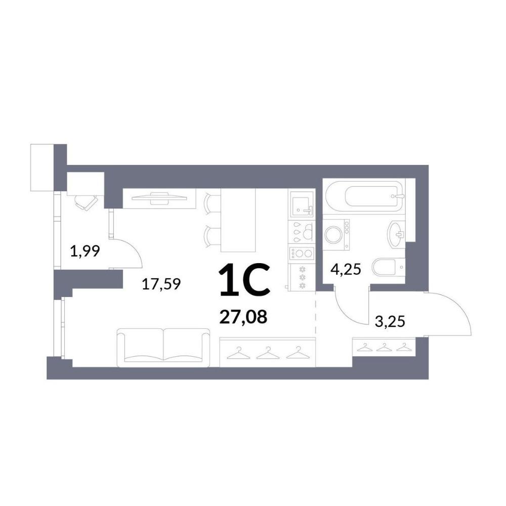 Общая площадь 27.09 м2
