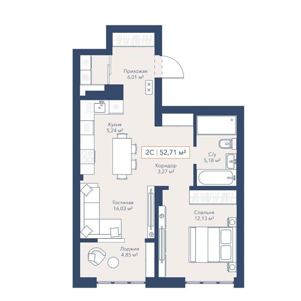 Двухкомнатная квартира-студия в ЖК Willart (Виларт)