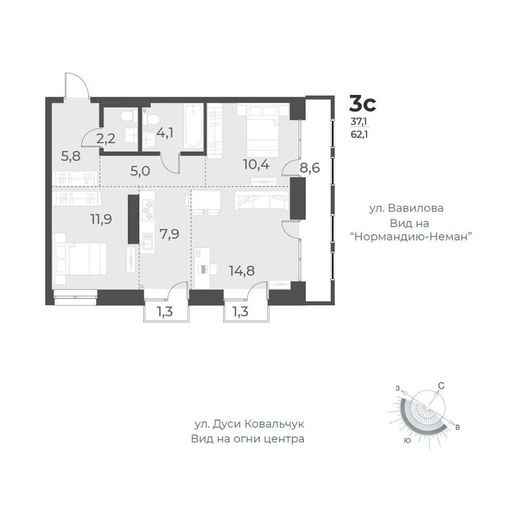 Трехкомнатная квартира-студия в ЖК Русское солнце