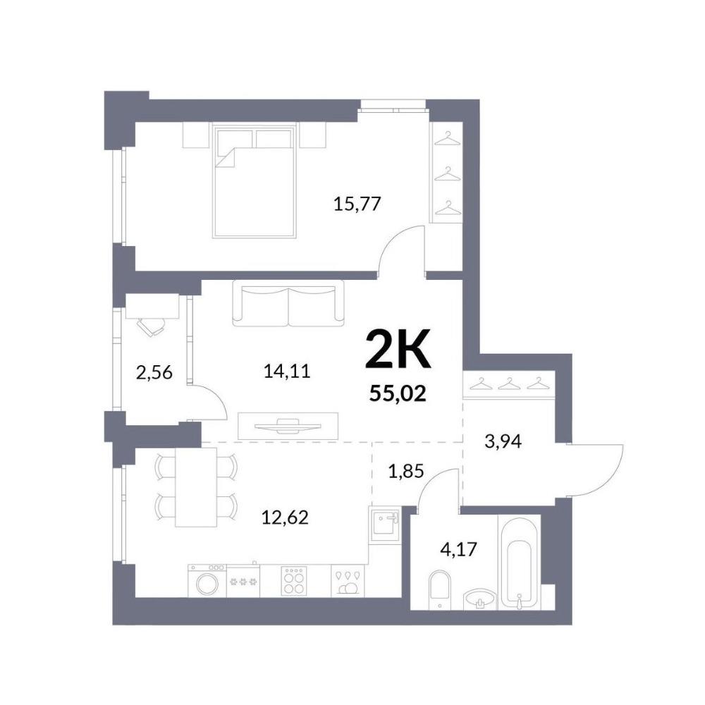 Общая площадь 55.02 м2