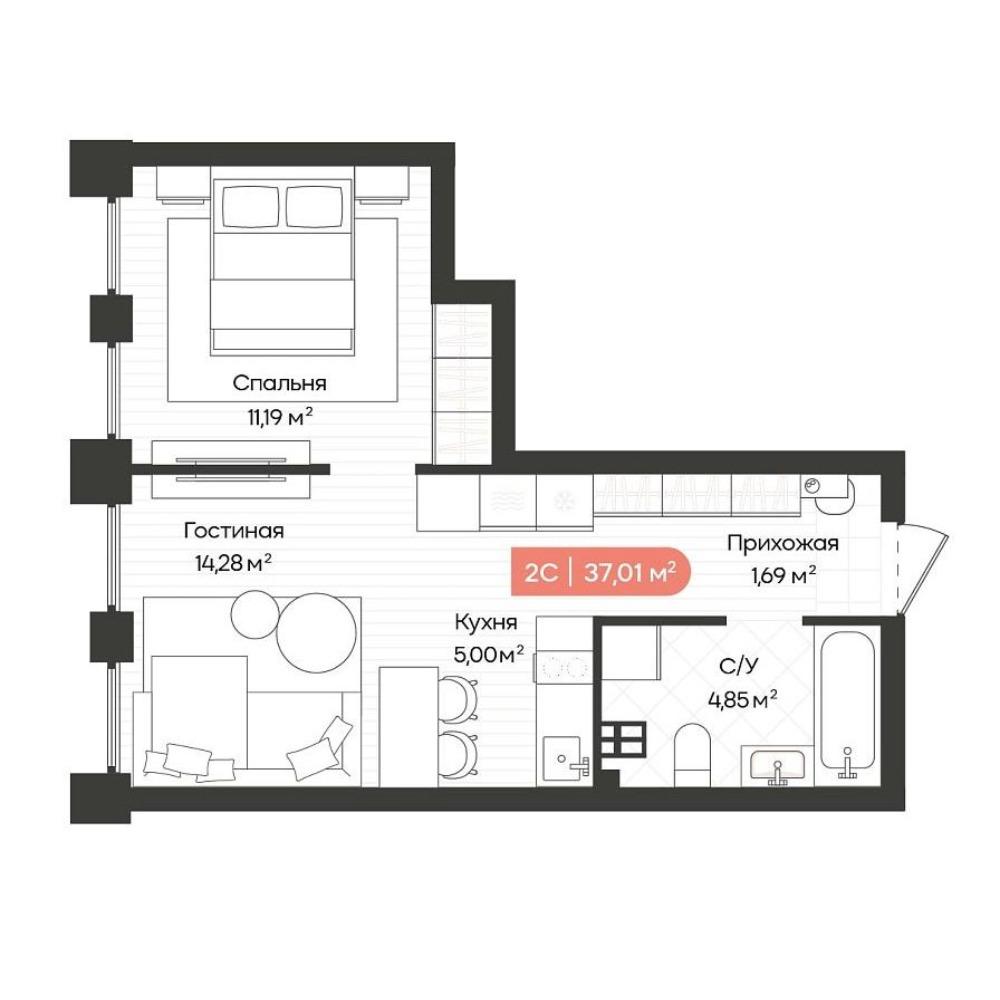 Двухкомнатная квартира-студия в ЖК Баланс (Balance)