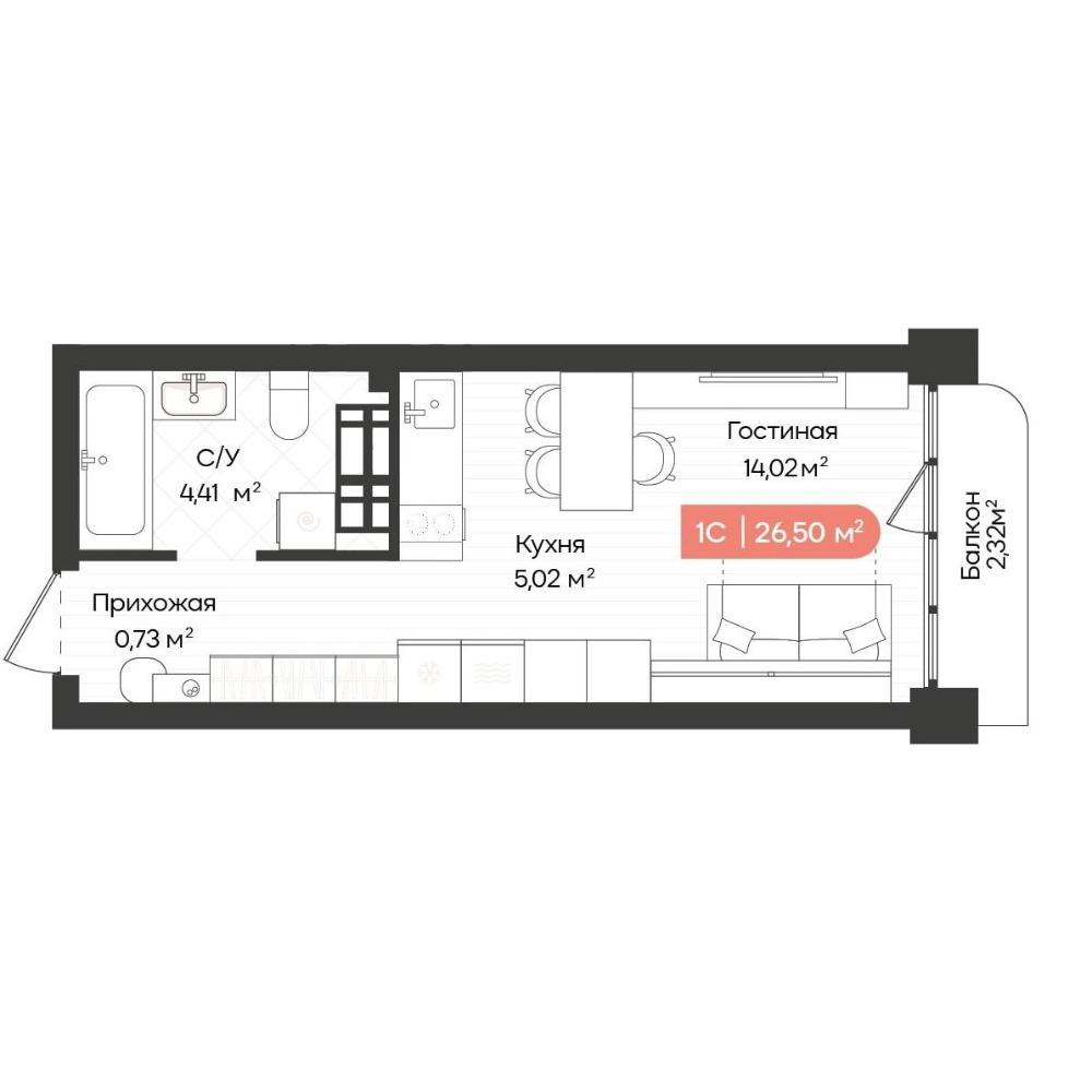 Однокомнатная квартира-студия в ЖК Баланс (Balance)