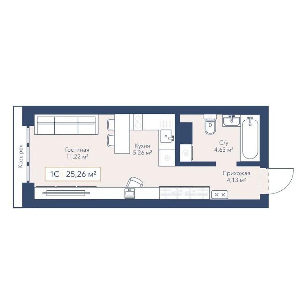Однокомнатная квартира-студия в ЖК Willart (Виларт)