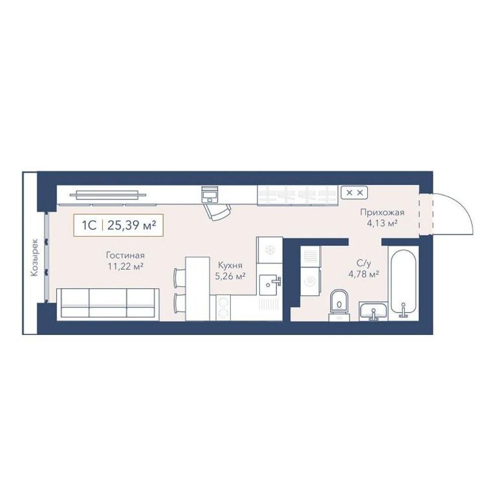 Однокомнатная квартира-студия в ЖК Willart (Виларт)