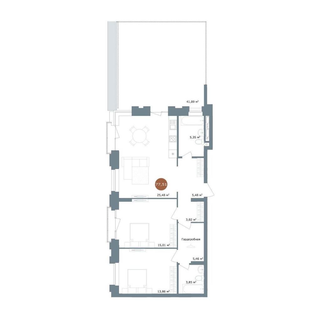 Трехкомнатная квартира-студия в ЖК 19|56 Кварталы Телецентра