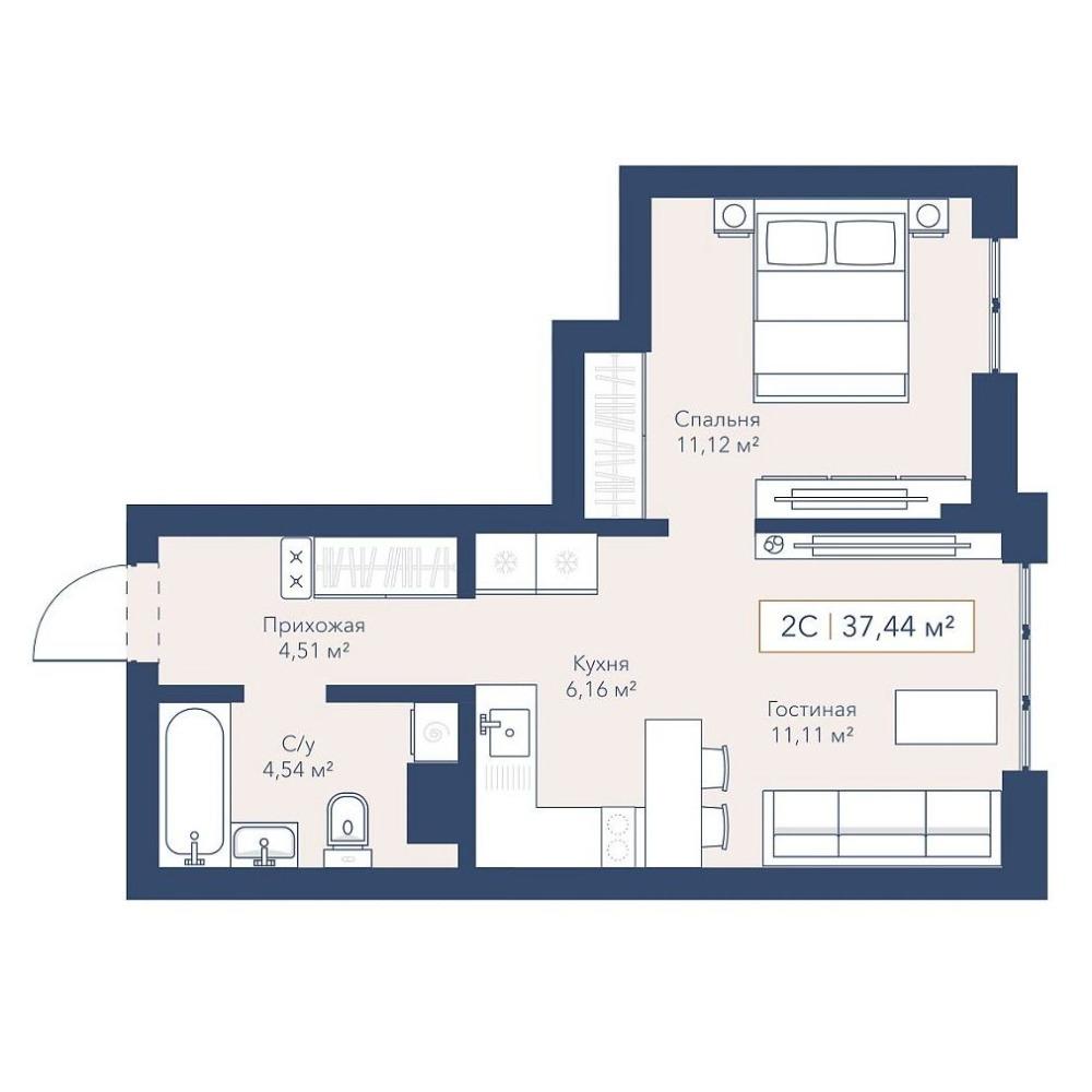 Общая площадь 37.44 м2