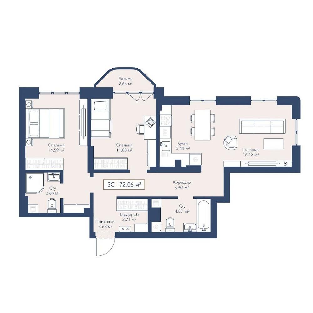 Трехкомнатная квартира-студия в ЖК Willart (Виларт)