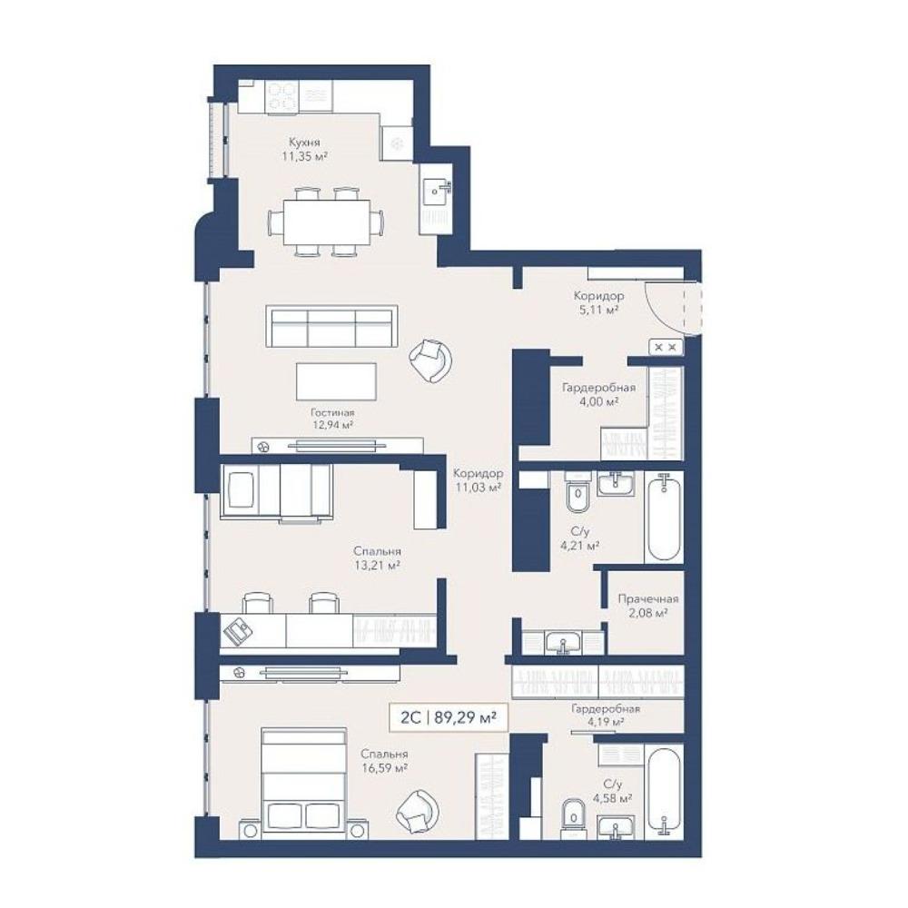 Трехкомнатная квартира-студия в ЖК Willart (Виларт)
